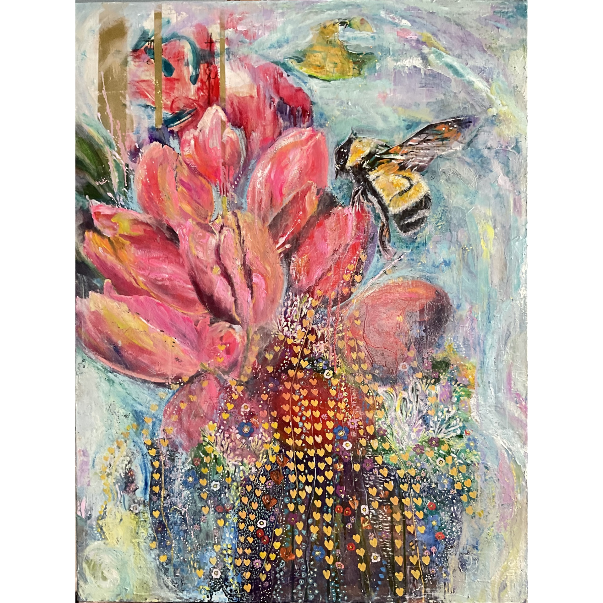 collage, gold leaf, acrylic & oil 40h x 30w in