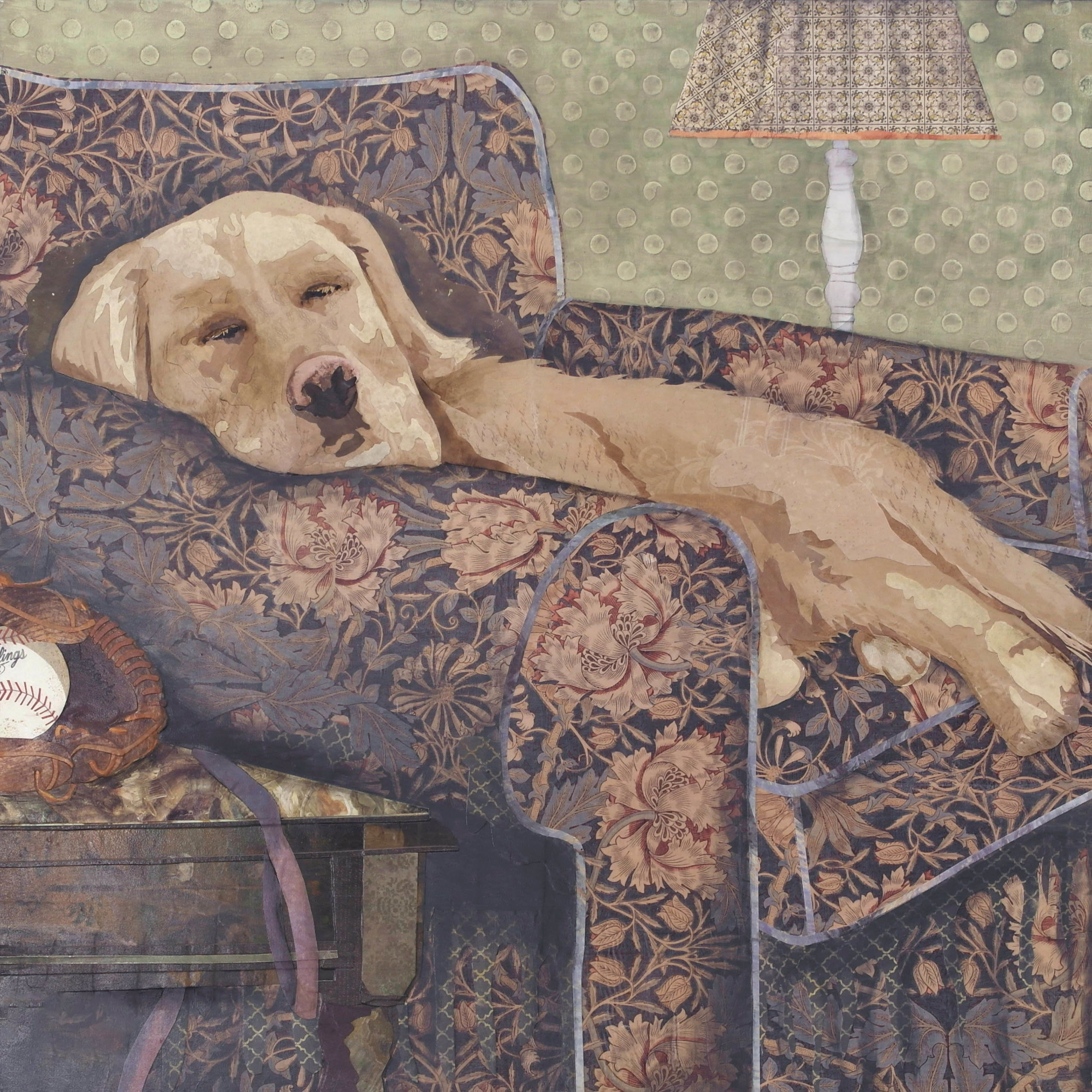 mixed media collage on wood panel36h x 36w in